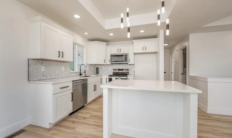 Attention to detail shines in this kitchen with handcrafted cabinetry, quartz countertops, and subtle gold accents that elevate the space.